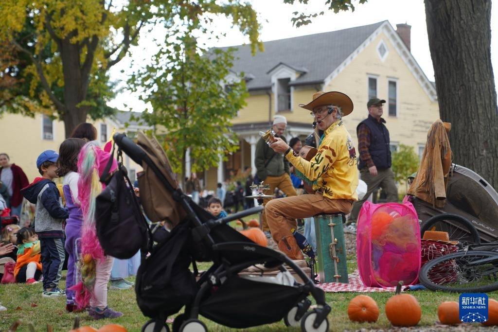 10月25日,人们在美国纽约总督岛参加秋日节活动。