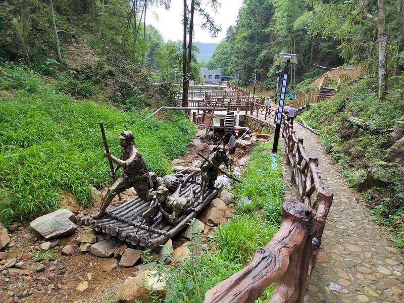 顺着墙绘旁的山路向上,作为长汀秀美下畲4A级景区创建的核心工程——笔架山旅游森林步道项目也于近期完工。步道全长2.5公里,以杨成武将军生平参与的重大战役为线索,在山林之间设置了多处红色打卡点位,助力红色研学。步道终点处设立了“乡村好礼”集市,帮助村民把豆腐干、地瓜干等农货卖出山。